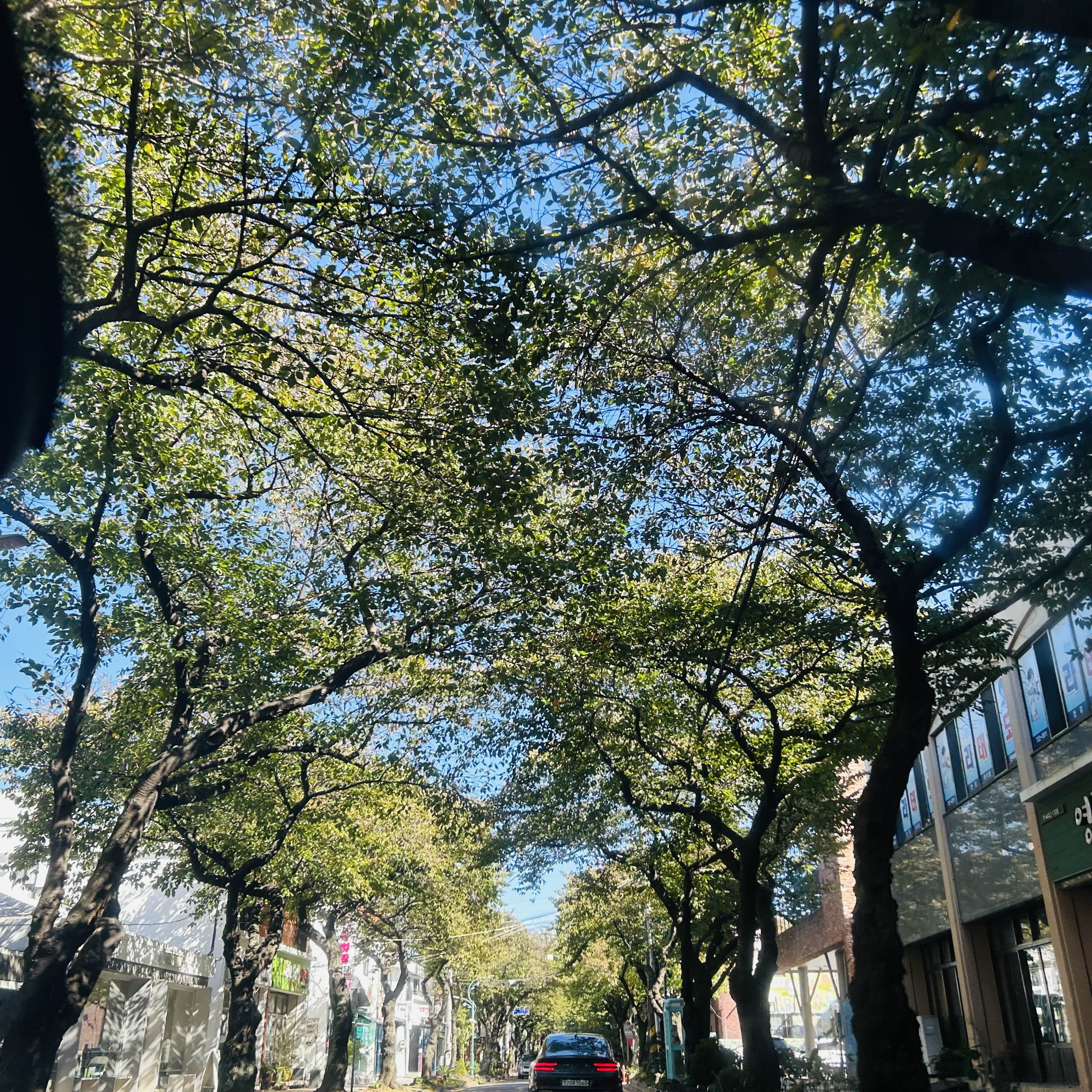 여기는 길이 쭉 나무로 뒤덮여 있는데 봄에 벚꽃 피면 진짜 굉장할 거 같아요. 꽃이 없어도 예쁘더라고요!