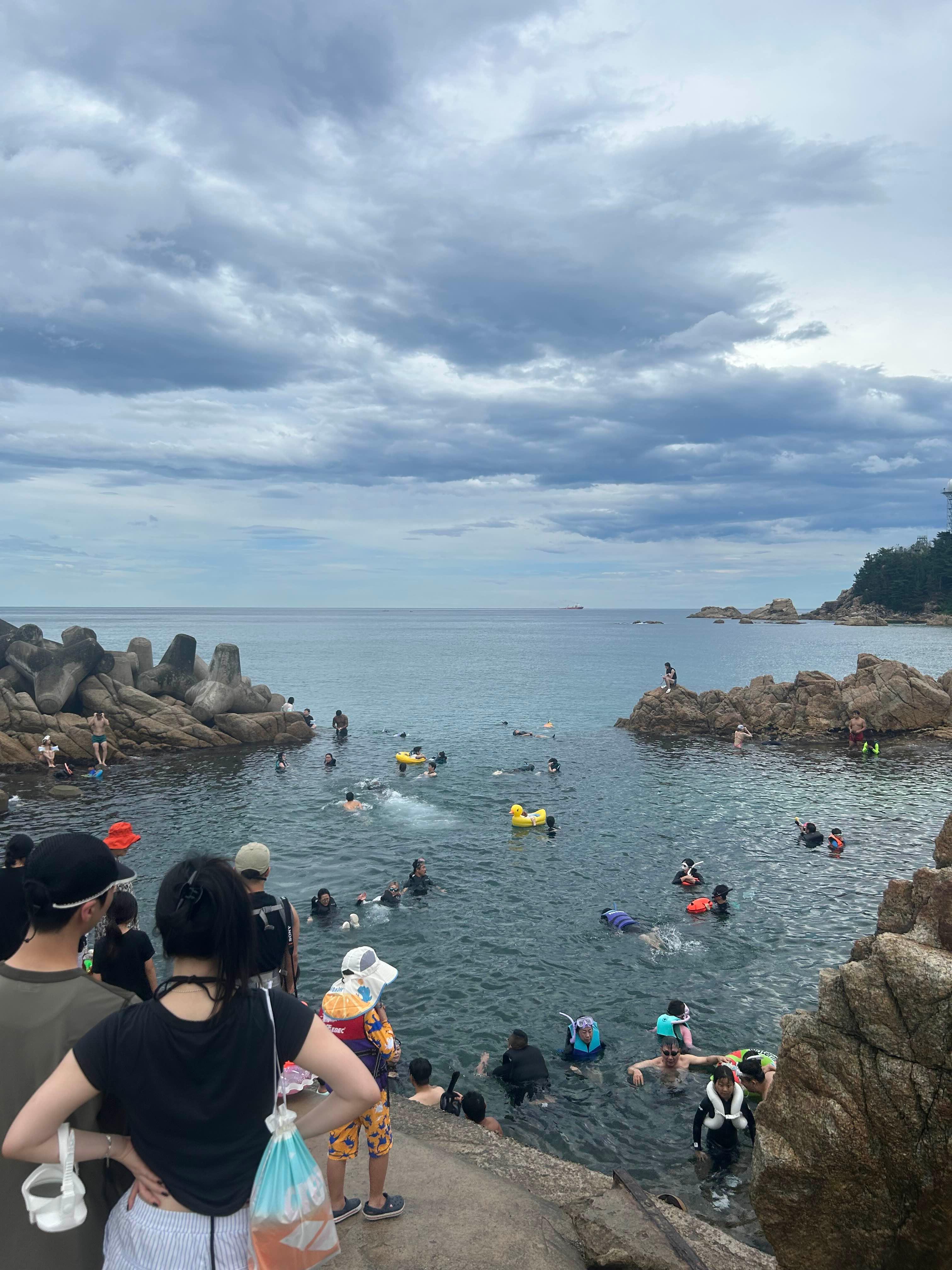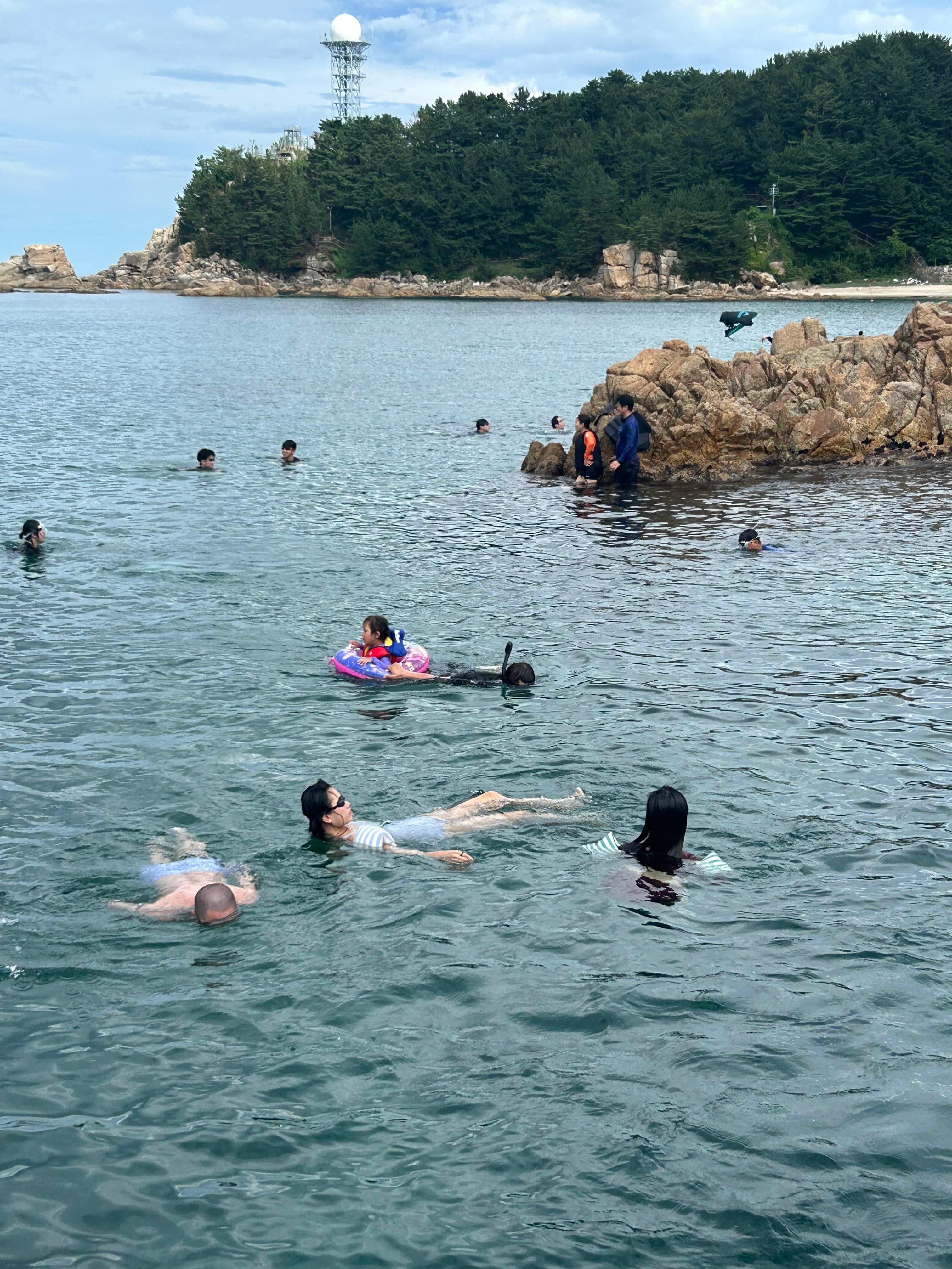다들 스노클링 장비 가져오거나 암튜브 착용하고 수영을 즐기는데 적당히 많은 사람들이 있어 무섭지 않고 수영 많이 했습니다~~