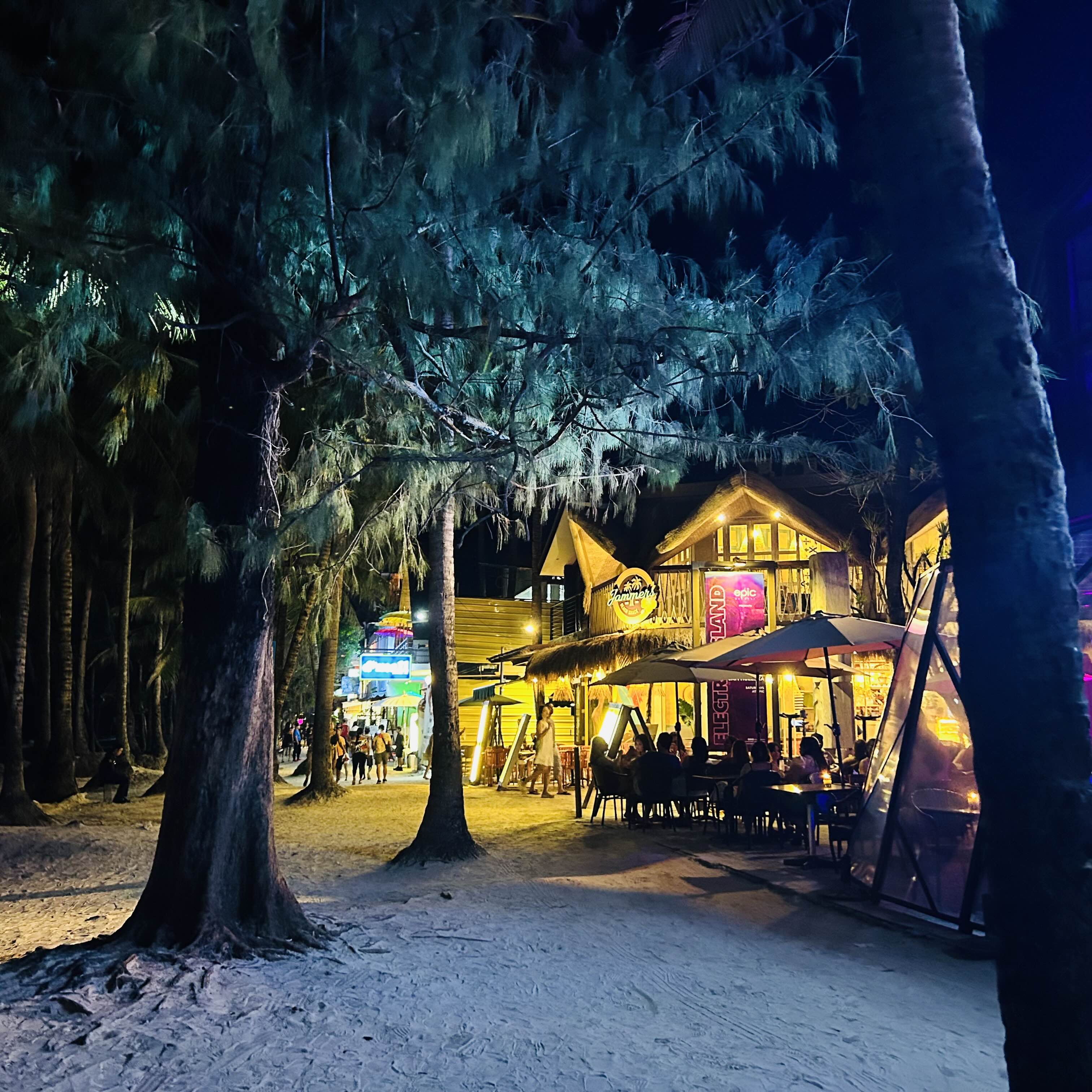 저녁 해변거리도 예뻐요. 여행지의 매력은 바로 이런 거 아닌가 싶습니다. 바닷가 근처에 모두 노천카페/노천식당으로 이루어져 있어서 다니기에 무섭거나 위험하지 않아요. 보라카이가 워낙 치안이 좋기 때문도 있지만요!
