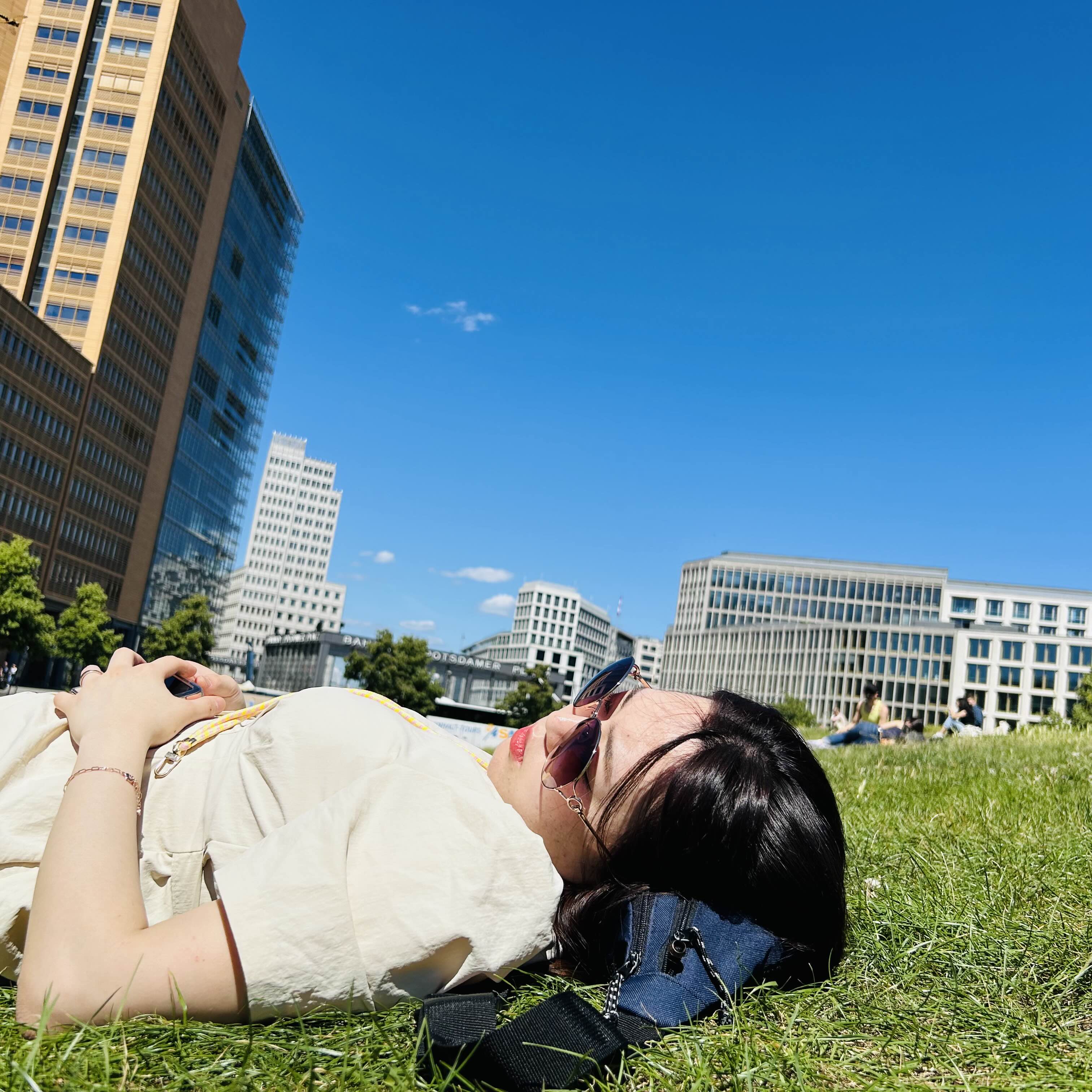 포츠다머플라츠역은 알렉산더만큼 크진 않았어요! 나오면 잔디밭에서 많이 누워있더라고요,, 해가 진짜 세서 살이 안 탈 수가 없는,,, 선크림 잘 챙겨 발랐습니다. 광장에 푸드트럭들이 많이 나와있어서 맥주 마셨는데 바람도 많이 불고 사람들은 노랫소리에 춤추는 진귀한 장면들을 봤어요. 진짜 사람들이 행복하게 살고 있는 기분이 들어서 저도 기분이 좋았습니다.