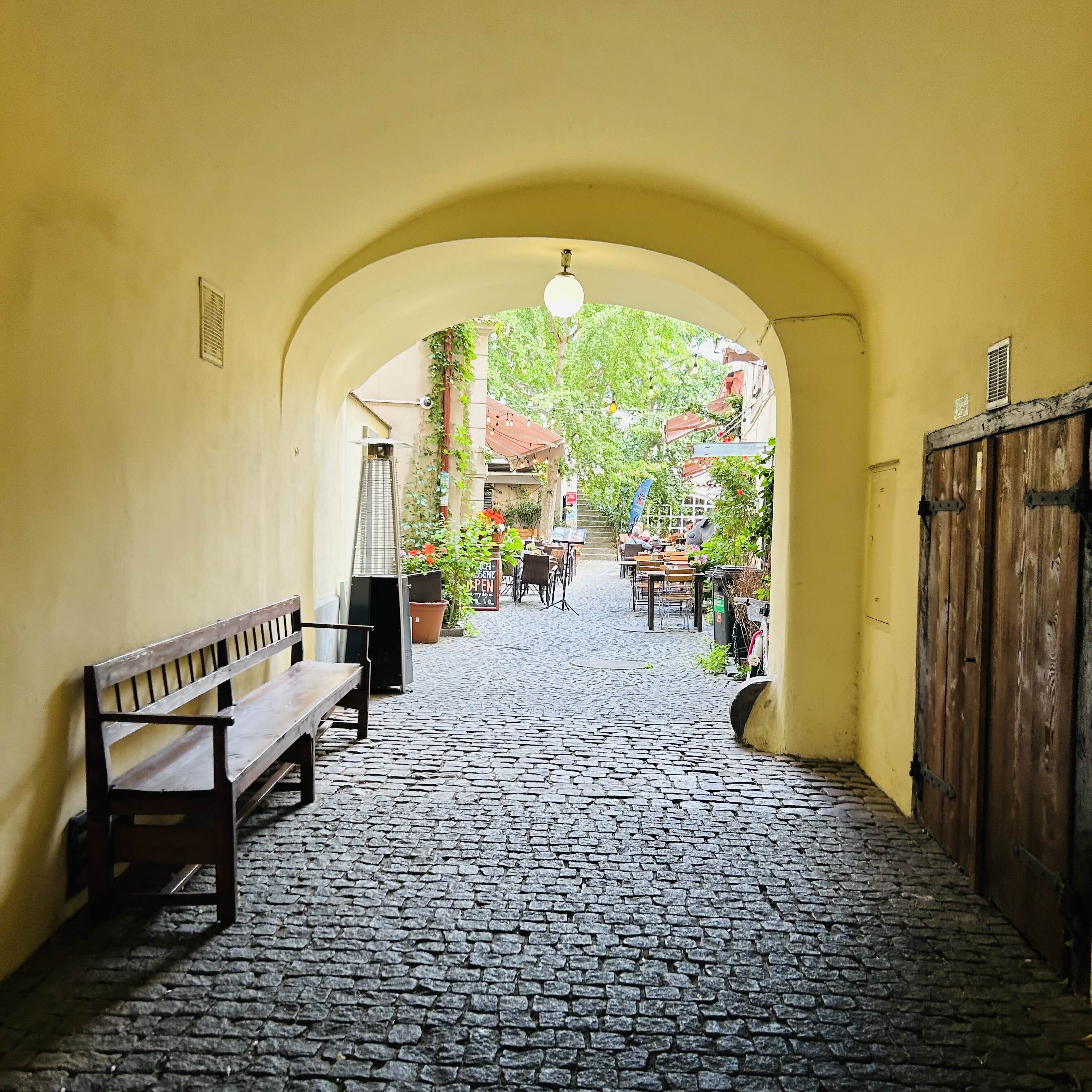 - 체코는 나라가 작아서인지 건물들 구조가 신기해요! 가게 안으로 들어가면 다른 가게가 있고 골목 안에 가게들이 많아요. 비밀공간처럼 가게 구경하는 재미도 있습니다. 여기는 잘못 찾아서 간 가게였는데 수많은 사람들이 맥주 한잔 하면서 이야기하는 모습이 진짜 보기 좋더라고요! 그래서 그냥 여기서 먹었습니다. 대가족이 식사하러 와서 저희에게 말 걸었는데 한국 하면 삼성으로 다 알더라고요! 다 먹었을 때 비 와서 다행이에요ㅎㅎ 나무가 많아서 비가 와도 어느 정도 막아주긴 했어요!
