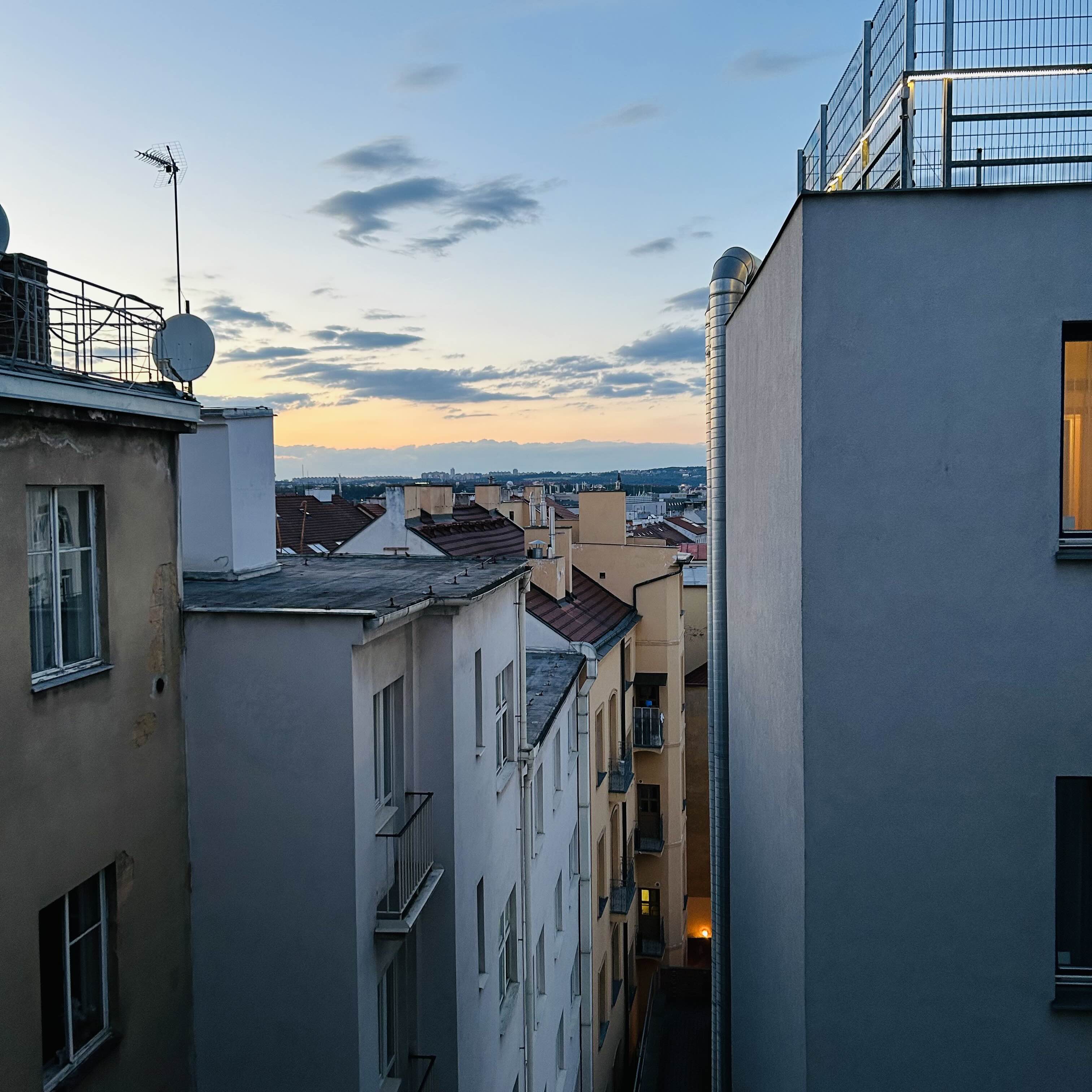 - 숙소는 나쁘지 않았어요. 숙소 안에서 보는 저녁하늘이 참 예뻤습니다. 체코는 날씨가 살짝 어두웠어서 그게 좀 아쉽긴 해요. 하지만 예쁘다는 거!!
