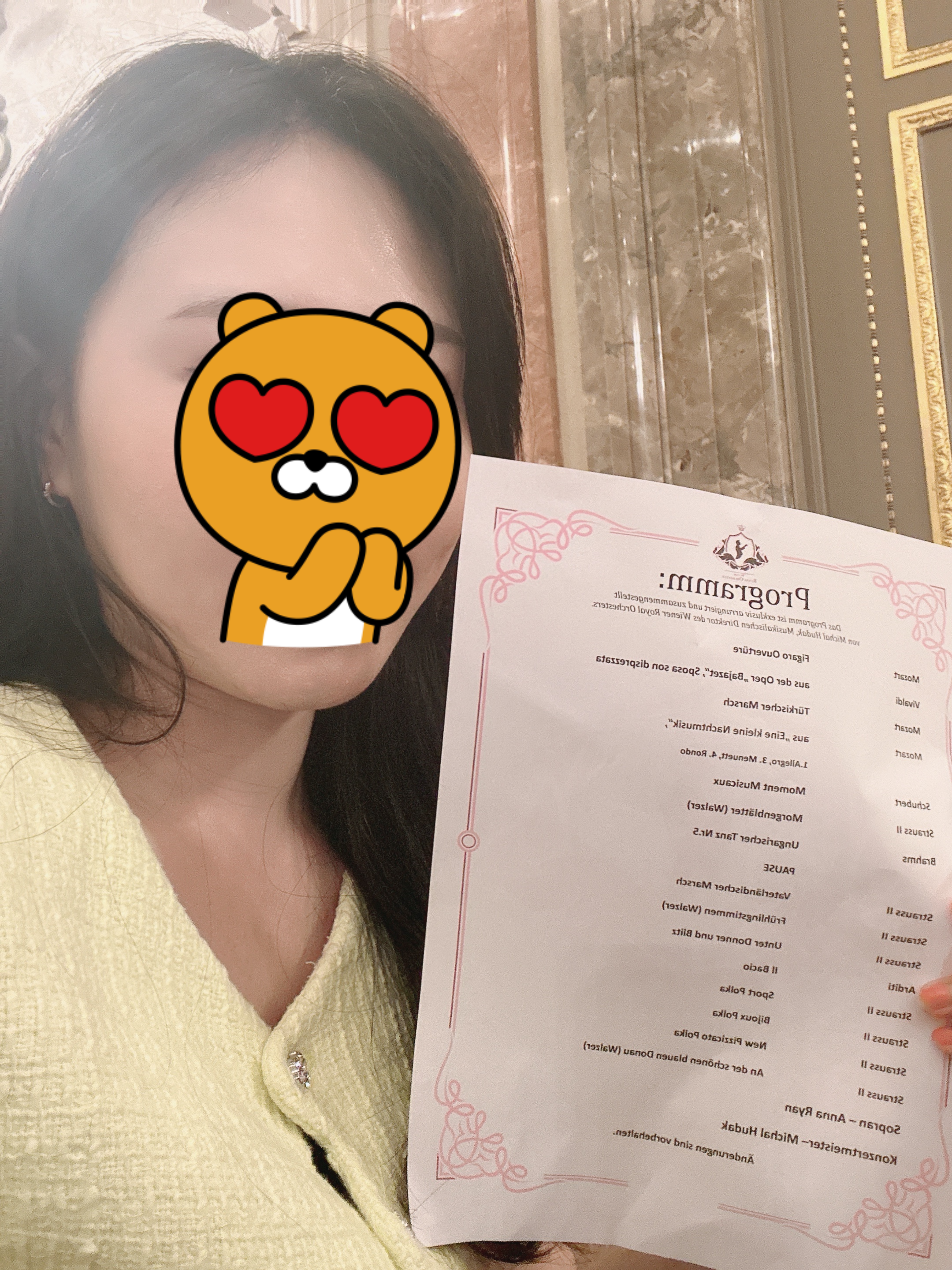 집으로 돌아가는 길에 빈 국립 오페라극장을 지나치는데 어떤 분이 오케스트라 안보냐면서 말을 걸었어요,, 처음에 사기꾼인줄 알고 말했는데 내일 공연 빈좌석 파는 분이었어요. 원래 여행 전에 어플로 예약을 했었는데 자동 취소가 되서 못보나 싶었는데 오히려 저렴하게 티켓구매해서 잘 보고 왔습니다. 엄청 큰 오케스트라가 아니어서 관중들이랑 연주자들이 함께하는 공연이었어요. 찾아가실때 공연장이 여러개가 있어요! 건물이 다 다른데 어디 건물인지 지도 찍어서 가야되요! 저희도 한참 찾았습니다. 노래만 계속 들었다면 좀 지루했을 수도 있었는데 연주자들의 센스로 재밌게보고 왔어요! 나오니까 비가 와서 비맞으면서 집으로 돌아갔네요! !